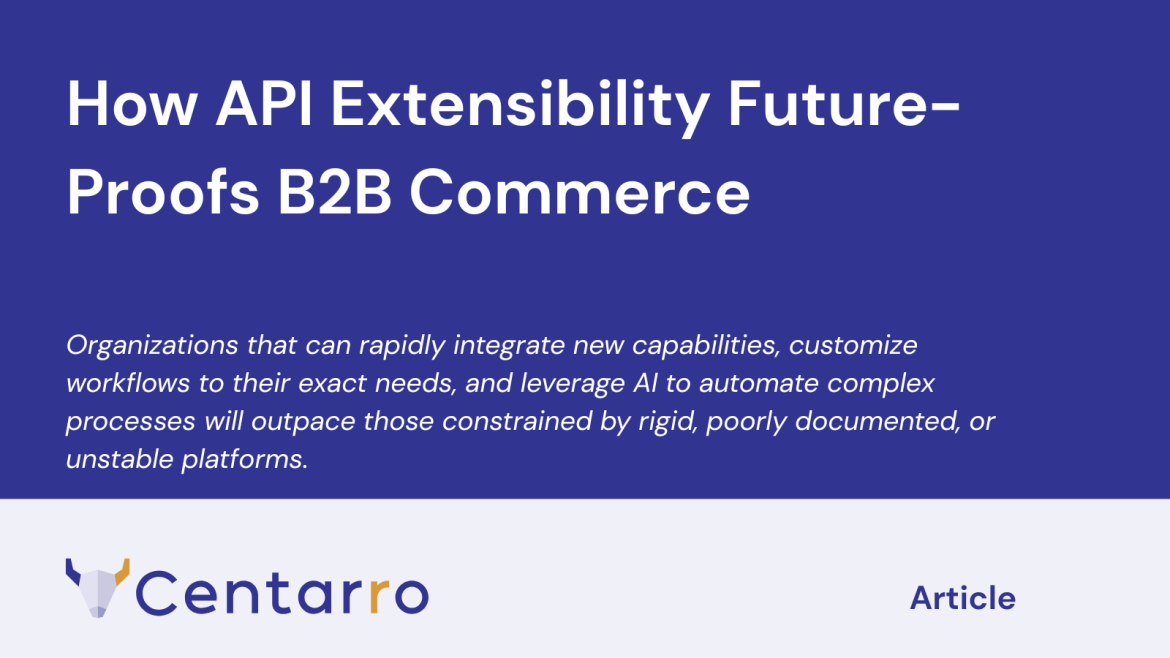 API extensibility is already important for B2B commerce, but we’re at an inflection point. The convergence of extensible APIs and AI-powered development hints at what might be possible in eCommerce, and as a result, what businesses should expect from their platforms.